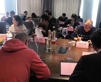 四、《紅酒知識及銷售技巧》由合肥愛德森堡文化發展公司的銷售經理尹朝元講解,合肥愛德森堡文化發展公司是安徽愛德森堡控股有限公司旗下的全資子公司,是一家專業的進口優質葡萄酒代理商和品牌運營商。這堂課首先帶我們了解葡萄酒,后細教我們怎樣品嘗葡萄酒,葡萄酒與食物的搭配,怎樣挑選葡萄酒,初步認識法國紅酒。通過本節課的學習讓新員工對葡萄酒的歷史、制作、儲存、品味等有了一個大概的了解,勾起了培訓現場的全員對葡萄酒文化產生了濃厚的興趣。