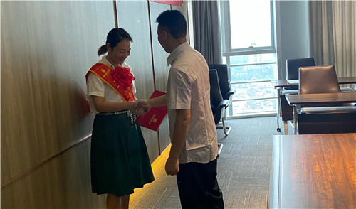 接下來頒發(fā)的是二等獎(jiǎng)獲獎(jiǎng)人員:控股公司潘云,董事長親自頒發(fā)榮譽(yù)證書及禮品,并與其進(jìn)行握手合影。