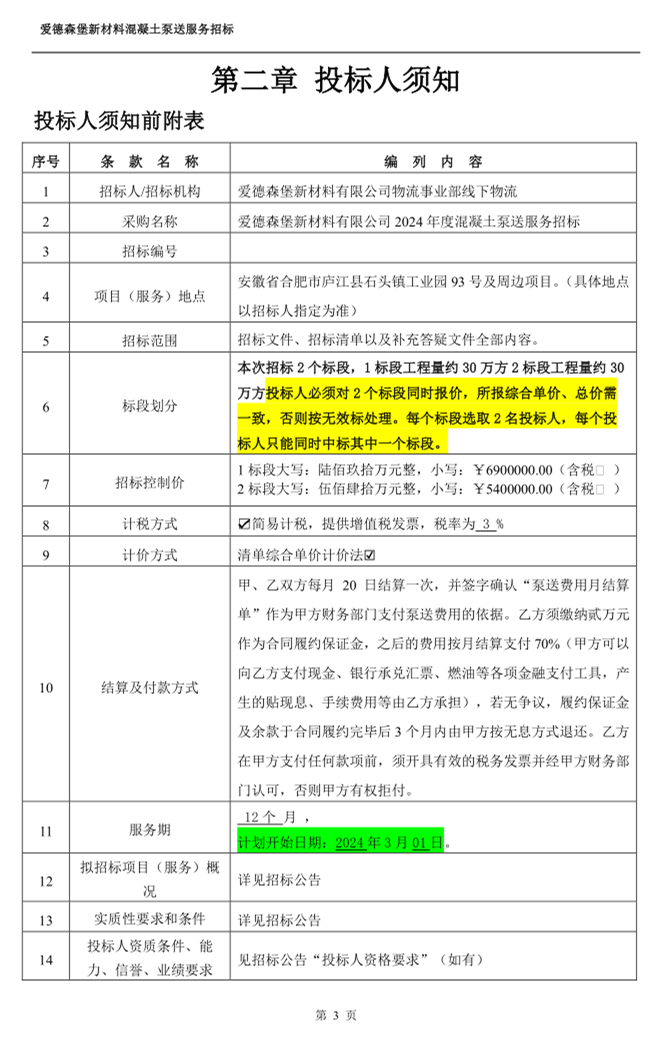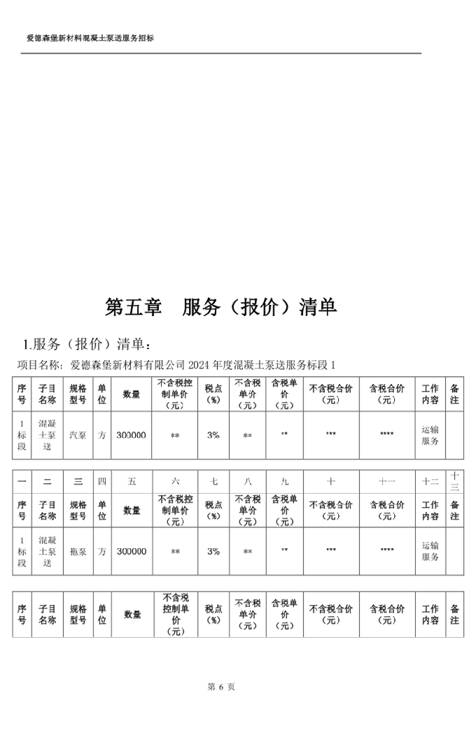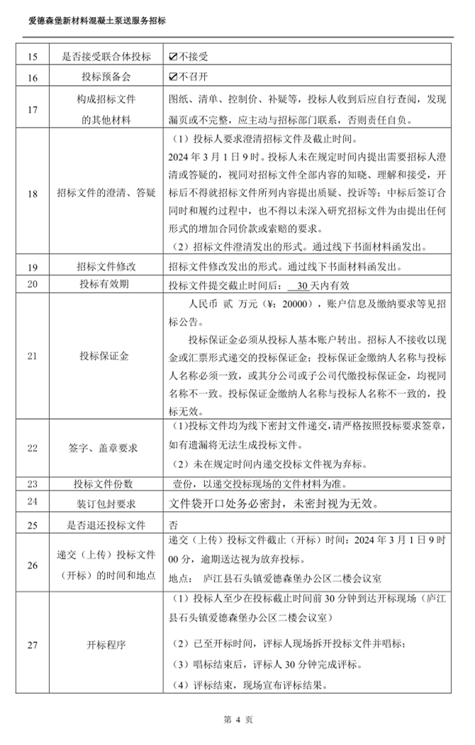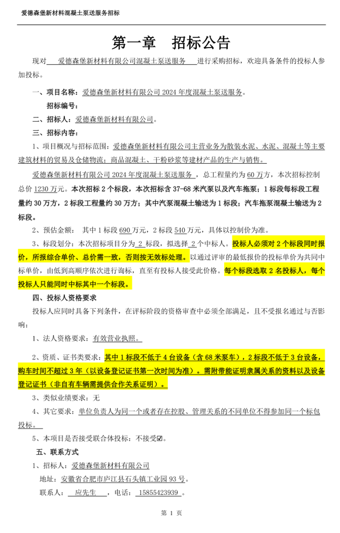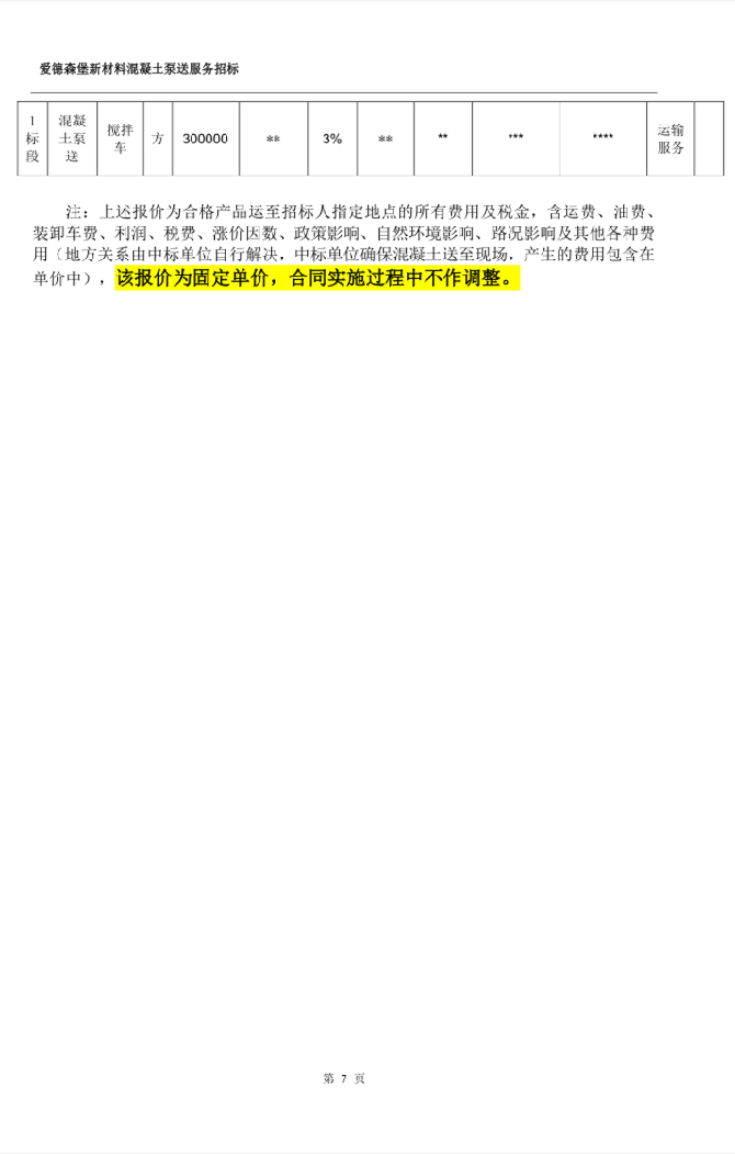愛德森堡新材料混凝土泵送服務招標