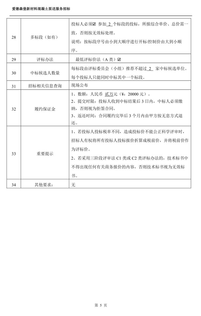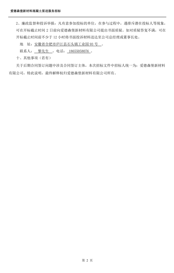 > 愛德森堡新材料混凝土泵送服務招標